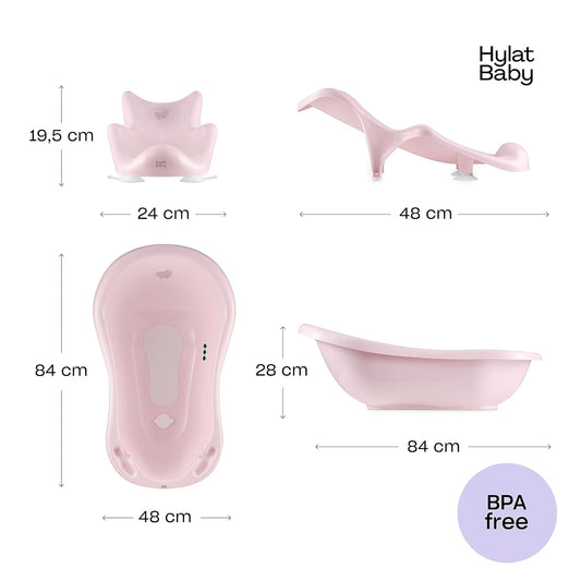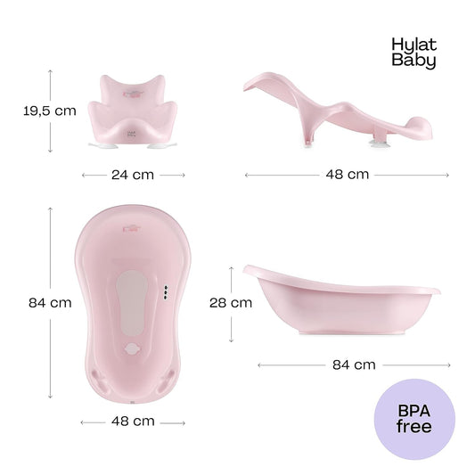 Lite set - Hylat Baby vanička 84cm, dětská vanička s rámem, koupací sedátko a odtok - růžová HUG ME