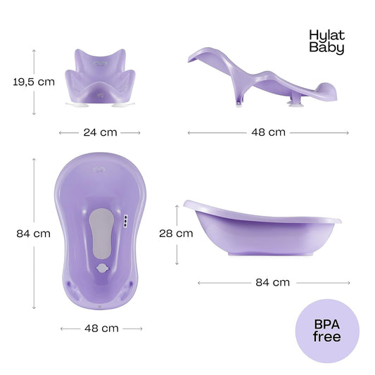 Sada pro koupání miminka Hylat Baby - dětská vanička se stojanem, sedátkem, teploměrem a odtokem - fialová YETI
