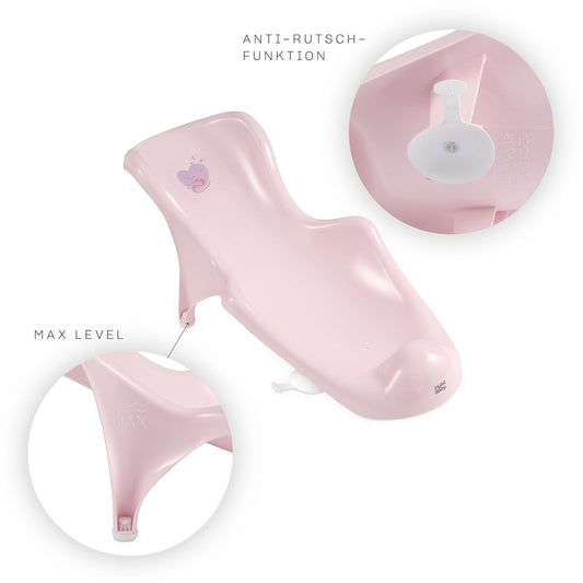Lite set - Hylat Baby vanička 84 cm, dětská vanička s rámem, koupací sedátko a odtok - růžová FRIENDS