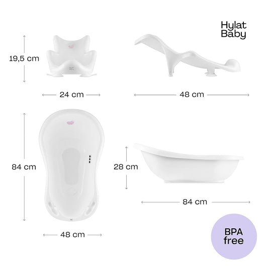 Lite set - Hylat Baby vanička 84cm, dětská vanička s rámem, koupací sedátko a odtok - bílá HUG ME