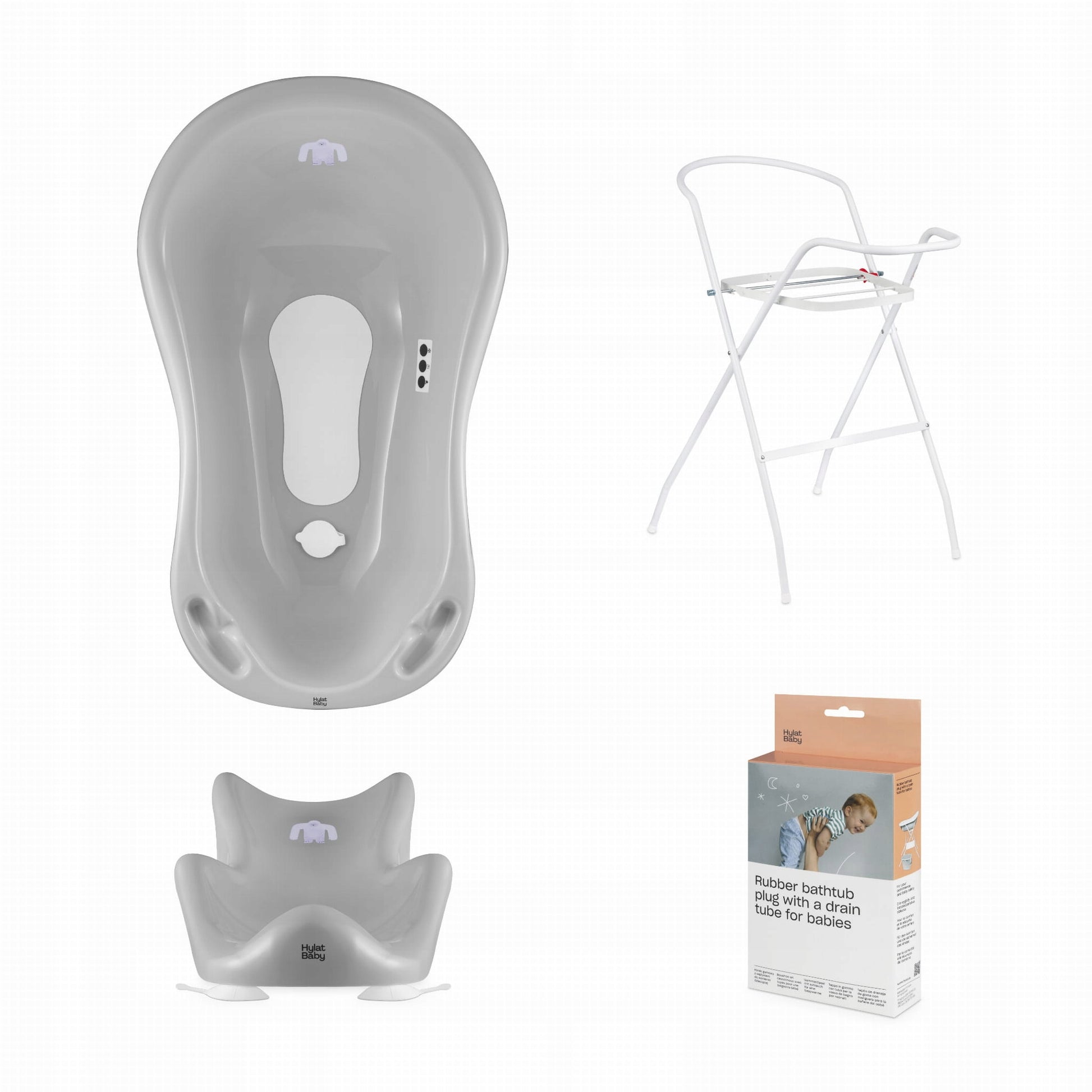 Zestaw kąpielowy Hylat Baby - wanienka 84 cm ze stojakiem, fotelikiem, termometrem i odpływem - szary YETI